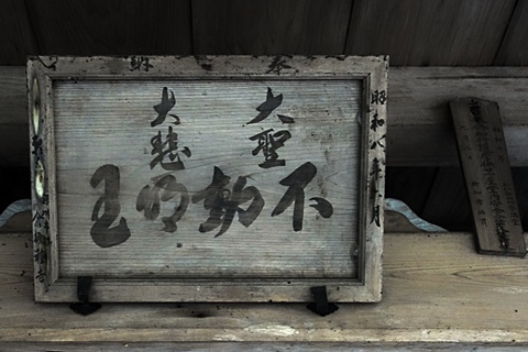 写真を撮ることにした。なお、道の右の建物を見ると、額に不動明王と記されている。後ろの