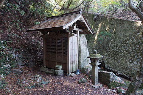 大石には不動明王が彫られているらしい。しかし、かなりの年月が経っているようで、その輪郭
