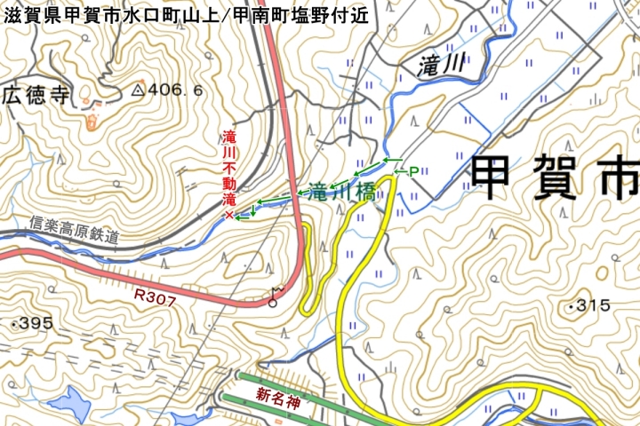 南は甲南町塩野であり、地域名も付けにくいので「滝川不動滝」ということにしておく。